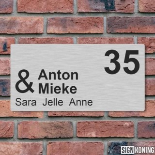 Met onze lasermachine branden wij jouw ontwerp in het RVS waarbij deze antraciet, bijna zwart, van kleur is. Er is geen andere kleur mogelijk bij het graveren van het naambordje. Door de combinatie van geborsteld RVS en de donkere gravering ontstaat een zeer luxe eindresultaat.