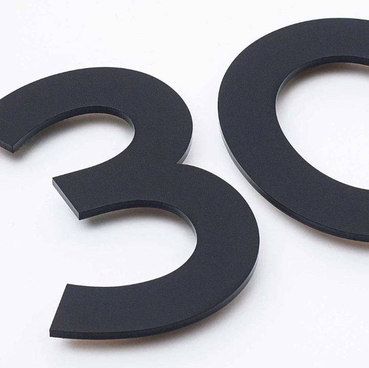 Mat zwart huisnummer op maat. De genoemde prijs is per cijfer.