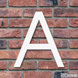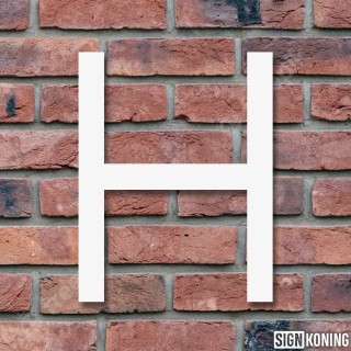 De breedte van het huisnummer is afhankelijk van het gekozen cijfer of letter. Bij het tabblad 'Specificaties' kun je precies aflezen hoe breed het huisnummer is.