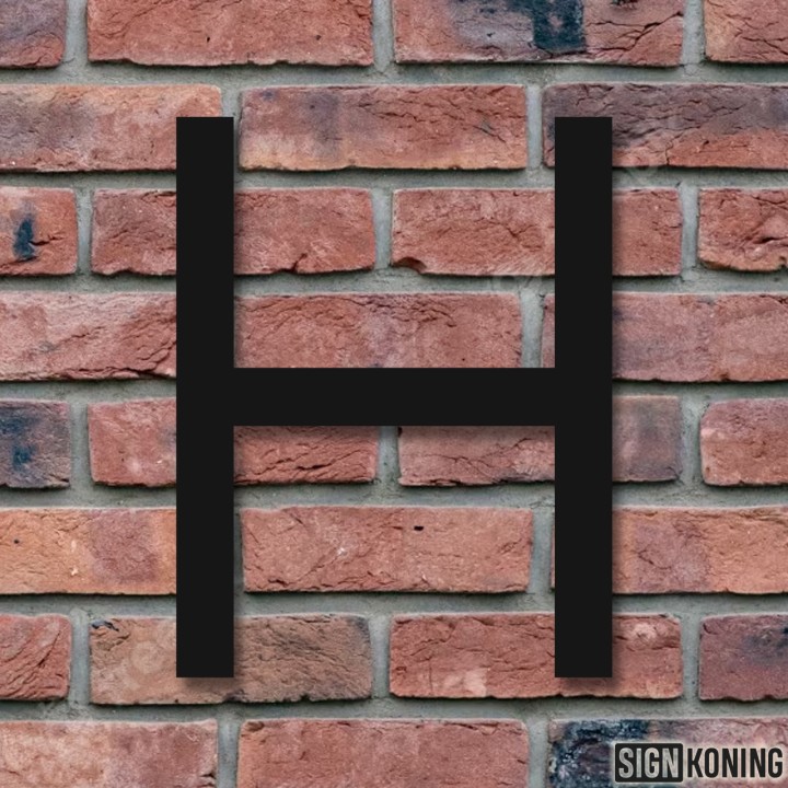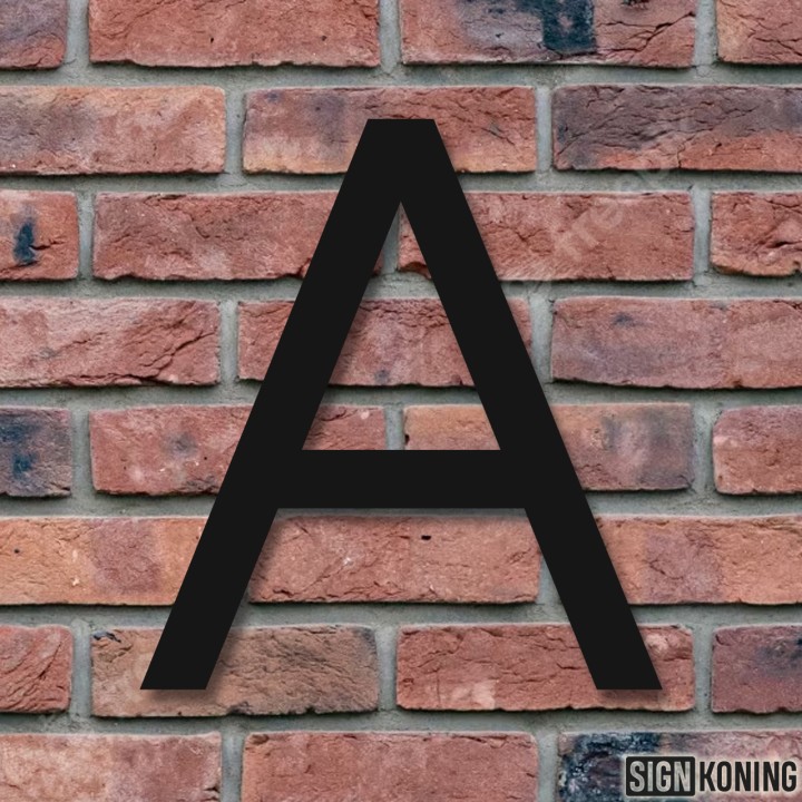 De breedte van het huisnummer is afhankelijk van het gekozen cijfer of letter. Bij het tabblad 'Specificaties' kun je precies aflezen hoe breed het huisnummer is.