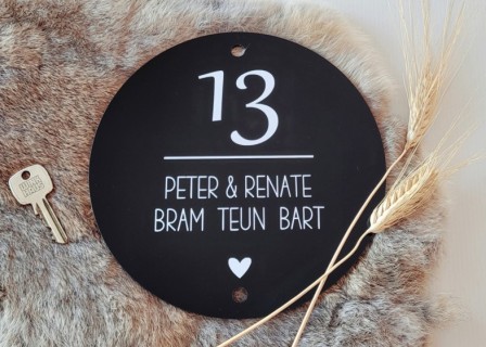 Rond mat zwart Plexiglas naambordje 20cm