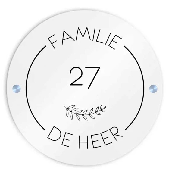 Rond wit Plexiglas naambordje 20cm