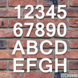 De breedte van het huisnummer is afhankelijk van het gekozen cijfer of letter. Bij het tabblad 'Specificaties' kun je precies aflezen hoe breed het huisnummer is.